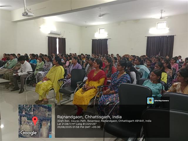इसके पश्चात कार्यक्रम की मुख्य अतिथि श्रीमती रश्मि सिंह (जिला परियोजना अधिकारी जिला साक्षरता मिशन) राजनांदगांव छत्तीसगढ़,ने छात्रों को 'लैंगिक संवेदनशीलता में शिक्षा की भूमिका पर' सम्बोधित करते हुए कहा कि जेंडर शब्द समाज की ही देन है। जितनी स्वतंत्रता लड़कों को है उतनी स्वतंत्रता आज लड़कियों को नहीं है। दोनों में भेदभाव किया जाता है दोनों में सहभागिता का होना नितांत आवश्यक है। लैंगिक संवेदनशीलता का अर्थ समझाते हुए उन्होंने कहा कि हमें एक दूसरे का सम्मान करना, उनके प्रति समान व्यवहार करना जिससे लैंगिक रूढ़ियों और पूर्वाग्रहों को चुनौती मिलती है और एक निष्पक्ष एवं समान समाज का निर्माण होता है। इसमें शिक्षा के माध्यम से जागरूकता बढ़ाना, अपने विचारों और विश्वासों पर सवाल उठाना,लैंगिक समानता को बढ़ावा देना। उदाहरण देते हुए अपने वक्तव्य में कहा कि बच्चों के जीवन में लैंगिक संवेदनशीलता को शामिल करना चाहिए ताकि वे एक दूसरे का बेहतर समर्थन कर सके और अनुचित व्यवहार के विरुद्ध खड़े हो सकें।इसके अतिरिक्त सरकार द्वारा महिलाओं के सशक्तिकरण के लिए चलाई जा रही योजनाओं की विभिन्न जानकारी भी छात्राओं को प्रदान की गई। पीटी उषा, साक्षी मलिक का उदाहरण देकर छात्रों को आत्मनिर्भर बनने के लिए प्रेरित भी किया। इस तरह से लैंगिक भेदभाव को नियंत्रित करने के लिए शिक्षा के माध्यम से विद्यार्थियों को लैंगिक संवेदनशीलता के बारे में जागरूक करने के भागीरथी प्रयास करने को कहा गया। इस कार्यक्रम में सभी प्राध्यापकगण उपस्थित थे। आभार प्रदर्शन और छात्राओं के स्वल्पाहार के पश्चात कार्यक्रम के समाप्ति की घोषणा की गई।