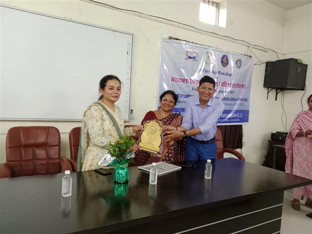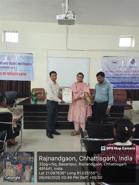 शासकीय शिवनाथ विज्ञान महाविद्यालय के तत्वाधान में पीएम उषा के तहत "लिंग समावेशन और समानता पहल" के अंतर्गत 'महिला सशक्तिकरण' विषय पर दिनांक 09- 9-2025 से 13- 9 -2025 तक पांच दिवसीय कार्यशाला का शुभारंभ दीप प्रज्वलित कर किया गया। कार्यक्रम की अध्यक्षता महाविद्यालय की प्राचार्य डॉक्टर निर्मला उमरे ने किया। उन्होंने अपने उद्बोधन में कहा कि यह एक ऐसी कार्यशाला है जो समग्र शिक्षा को बढ़ावा देती है। महिलाओं को वर्तमान में आत्मनिर्भर होना अत्यंत आवश्यक है जिससे वह आर्थिक रूप से सुदृढ़ हो सके। अतः आर्थिक सशक्तिकरण से ही महिलाओं में विकास संभव हो सकेगा। इन पांच दिवसीय कार्यशाला में विभिन्न गतिविधियों के माध्यम से महाविद्यालय के छात्रों में कौशलता का विकास होने की भी बात कही। इसके पश्चात इस कार्यशाला की मुख्य अतिथि गुरप्रीत कौर (जिला महिला एवं बाल विकास अधिकारी राजनांदगांव)द्वारा महिला सशक्तिकरण संबंधी अनेक महत्वपूर्ण जानकारी छात्रों को दी गई। उन्होंने कहा कि जन्म के पहले से ही महिला सशक्तिकरण के बारे में आज सोचना पड़ रहा है। भ्रूण हत्या संबंधी अपराध अत्यधिक मात्रा में हो रहे हैं। बेटियों को आज भी बेटों के समान अधिकार नहीं दिया जाता, परस्पर भेदभाव किया जाता है। दोनों को समान अधिकार व समान पालन -पोषण मिलना चाहिए और दोनों के विकास के साथ-साथ उनके संरक्षण पर भी बल देनी चाहिए। उन्होंने यह भी कहा कि यदि आप स्वयं का ब्यापार या व्यवसाय कार्य करने के इच्छुक है तो महिला बाल विकास विभाग आप सभी के सपनों को साकार करने का हरसंभव प्रयास करेगी। तत्पश्चात श्री किशोर माहेश्वरी जी(मुख्य वक्ता) ने जनकल्याणकारी योजनाओं के बारे में अनेक महत्वपूर्ण जानकारी छात्राओं को साझा किया। उन्होंने कहा कि आज हर महिला को आत्मनिर्भर होना चाहिए इसके लिए उनमें अनेक प्रकार के कौशल गुणों का विकास आवश्यक माना है। शिक्षा की भूमिका को महत्वपूर्ण बताते हुए उन्होंने कहा कि"नारी पढ़ेगी देश बढ़ेगा"। यदि व्यक्ति के अंदर प्रतिभा, क्षमता, जुनून, और रुचि हो तो वह हर कार्य में दक्ष हो सकते हैं। अनेक शासकीय योजनाओं का लाभ उठाने की बात भी कही जिससे आसानी से हम अपनी आजीविका चला सकें और अपने परिवार का पालन पोषण कर सकें । इस तरह शासकीय योजनाओं को विस्तार से बताते हुए सामर्थ्य और संबल संबंधी योजनाओं पर भी प्रकाश डाला। अंत में उन्होंने कहा कि हमें एक दूसरे का सम्मान करना, उनके प्रति समान व्यवहार करना जिससे लैंगिक रूढ़ियों और पूर्वाग्रहों को चुनौती मिलती है और एक निष्पक्ष एवं समान समाज का निर्माण होता है। इस कार्यक्रम में सभी प्राध्यापकगण उपस्थित थे। आभार प्रदर्शन और छात्राओं के स्वल्पाहार के पश्चात कार्यक्रम के समाप्ति की घोषणा क