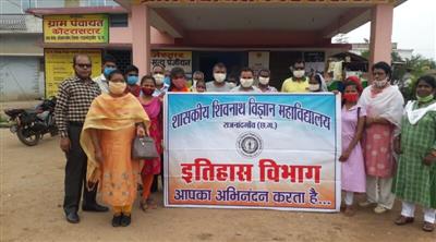 राजनांदगांव। शासकीय शिवनाथ विज्ञान महाविद्यालय, राजनांदगांव में दिनांक 05.08.2021 को महाविद्यालय से 8 किमी. की दूरी पर गोदग्राम कोटरासरार डोगरगांव रोड़ पर स्थित है। महाविद्यालय के प्राचार्य डॉ. आई.आर. सोनवानी के निर्देशन में इतिहास विभाग के विभागाध्यक्ष डॉ0 फुलसो राजेश पटेल के नेतृत्व में दिनांक 05.08.2021 को गोदग्राम कोटरासरार में ’’ऐतिहासिक धरोहर’’ को संरक्षित करने के लिए जन जागरूकता अभियान चलाया गया। ग्राम पंचायत कोटरासरार के पंचायत भवन में ग्राम के सरपंच श्री ऋषि कोर्राम ग्राम के सचिव सहित मताएं बहने, गणमान्य नागरिक, पंचायत की महिलायें, युवा वर्ग तथा जनसमान्य वर्ग के सदस्य भी इस कार्यक्रम में उपस्थित हुए। कार्यक्रम में ऐतिहासिक धरोहर को संरक्षित करने के लिए तथा संवर्धन के साथ-साथ अपनी सांस्कृतिक धरोहर को संग्रहित करने के लिए जन समूह को संबोधित करते हुए इतिहास विभाग की विभागाध्यक्ष डॉ0 फुलसो राजेश पटेल ने संबोधित किया कि देश का इतिहास, संस्कृति हमारी सभ्यता की कला, हमारी धरती के कण-कण में समाहित है। हमे इसे पहचान कर हमारी अपनी ऐतिहासिक धरोहर को संचित रखना है। प्रकृति प्रदŸा अनगिनत बहुमूल्य धरोहर हमारे सांस्कृतिक ज्ञान के लिए उपहार स्वरूप प्राप्त है। जमीन पर कल-कल करती, बहती नदियां, झरने, तालाब, सरोवर, वन, जंगल, पेड़ पौधे, वन्यपशु, रमणीय स्थल, मंदिर, भवन, भग्नावशेष, प्राचीन सिक्के, ताम्र पत्र, मिट्टी के बर्तन, प्राचीन मूर्तिंयां, कला कृतियां, सिक्के, आभूषण, वस्त्र, प्रसाधन सामग्री तथा मानव और मानव द्वारा उपयोग में किये जाने वाले समस्त सामग्री हमारे सांस्कृतिक की पहचान होती हैं। सभी ऐतिहासिक पुरावाशेषों से हमारी संस्कृति का पता चलता है। इन सभी ऐतिहासिक पुरावाशेष जो यत्र-तत्र बिखरे पड़ंे हैं उन्हें संरक्षित करना है, संवर्धन करना है, इससे हमारे आने वाले समय में इतिहास की संरचना और लेखन मदद होगी।